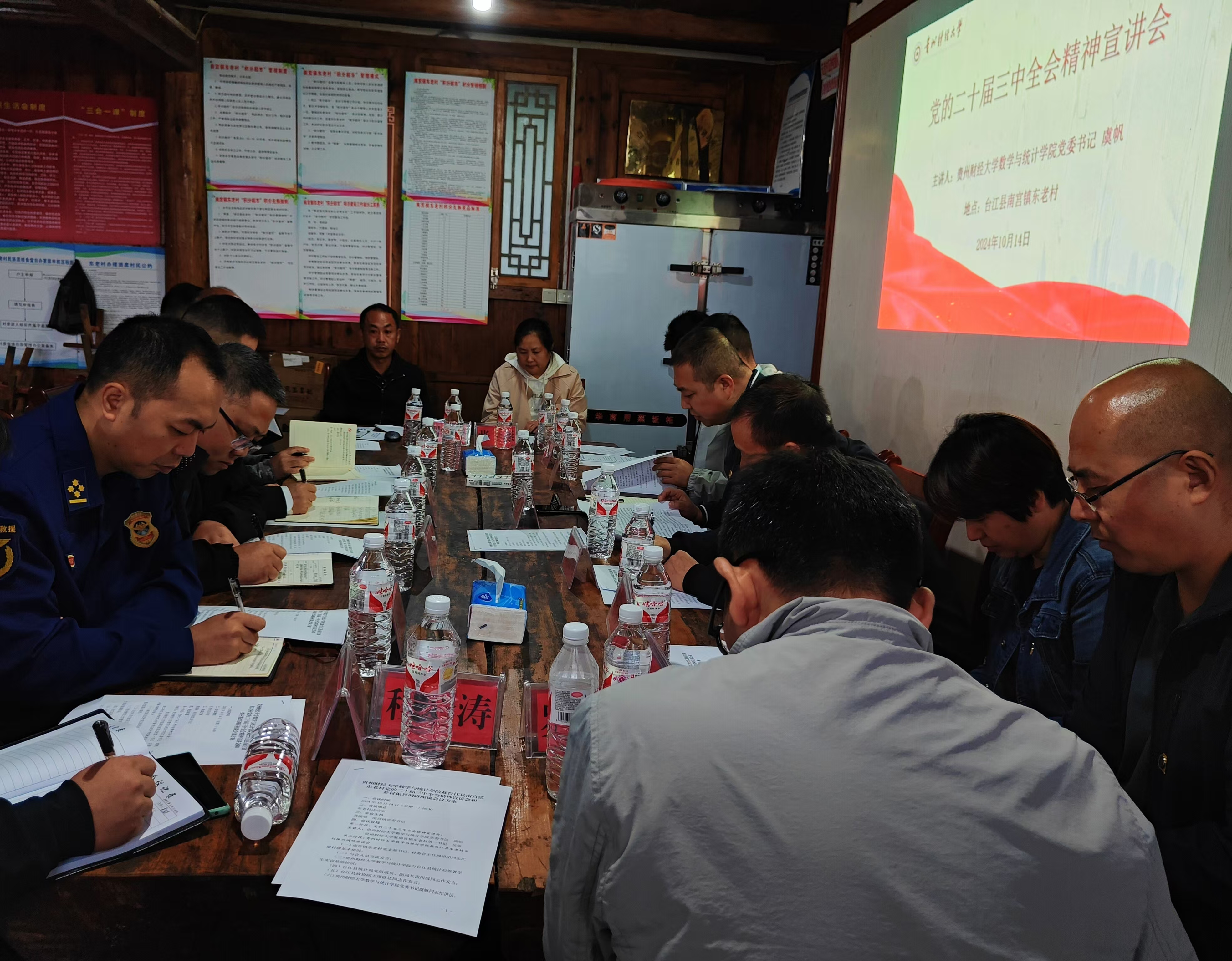 14日,虞帆一行到台江县南宫镇东老村宣讲并调研座谈,台江县政协副主席欧达、南宫镇党委书记龚循举、县统计局副局长雷用成,东老村帮扶单位县财政局、县消防救援大队、贵州银行台江支行有关负责人及村支两委班子成员、驻村第一书记吴敬参加。