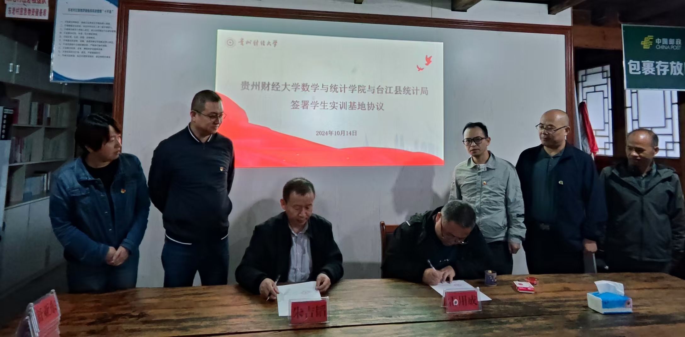 党委副书记朱吉韬代表学院先后与台江县统计局、凯里市统计局续签了校外实践教学基地协议。