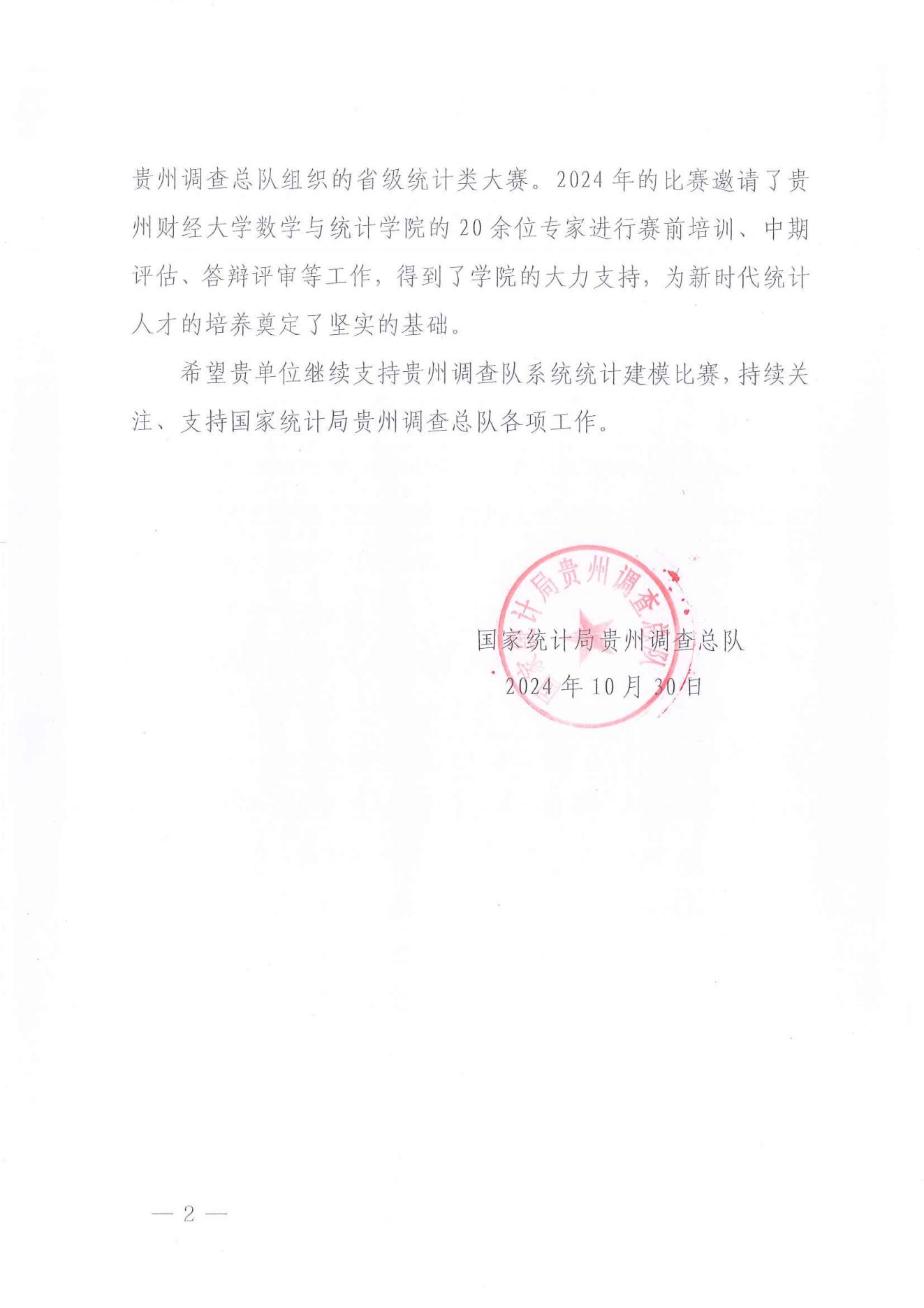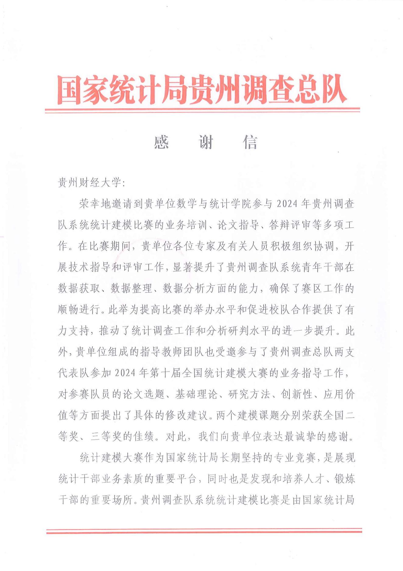 国家统计局贵州调查总队来信感谢我校老虎机游戏在线玩