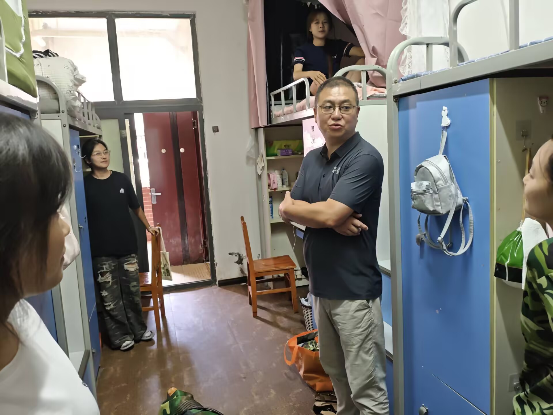 8月24日下午,老虎机游戏在线玩 领导班子及2025级本科生、研究生辅导员深入学生寝室,走访慰问2025级新生。