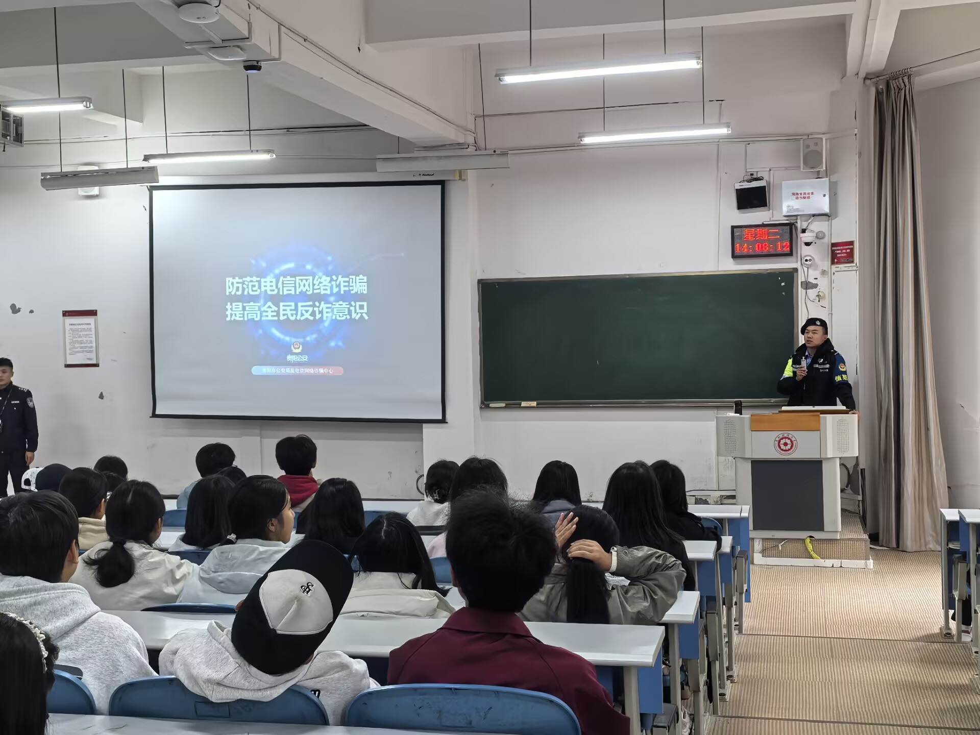 宣讲中,民警们围绕“海南套代购”等真实案例,生动介绍了目前主要的校园诈骗类型、特征及其识别和防范要点,结合当代大学校园环境和年轻人群的兴趣爱好特点,向同学们传授了在校大学生应如何加强个人信息保护、识别诈骗手段,以及避免触及法律红线等内容,提醒同学们筑牢防诈思想防线。