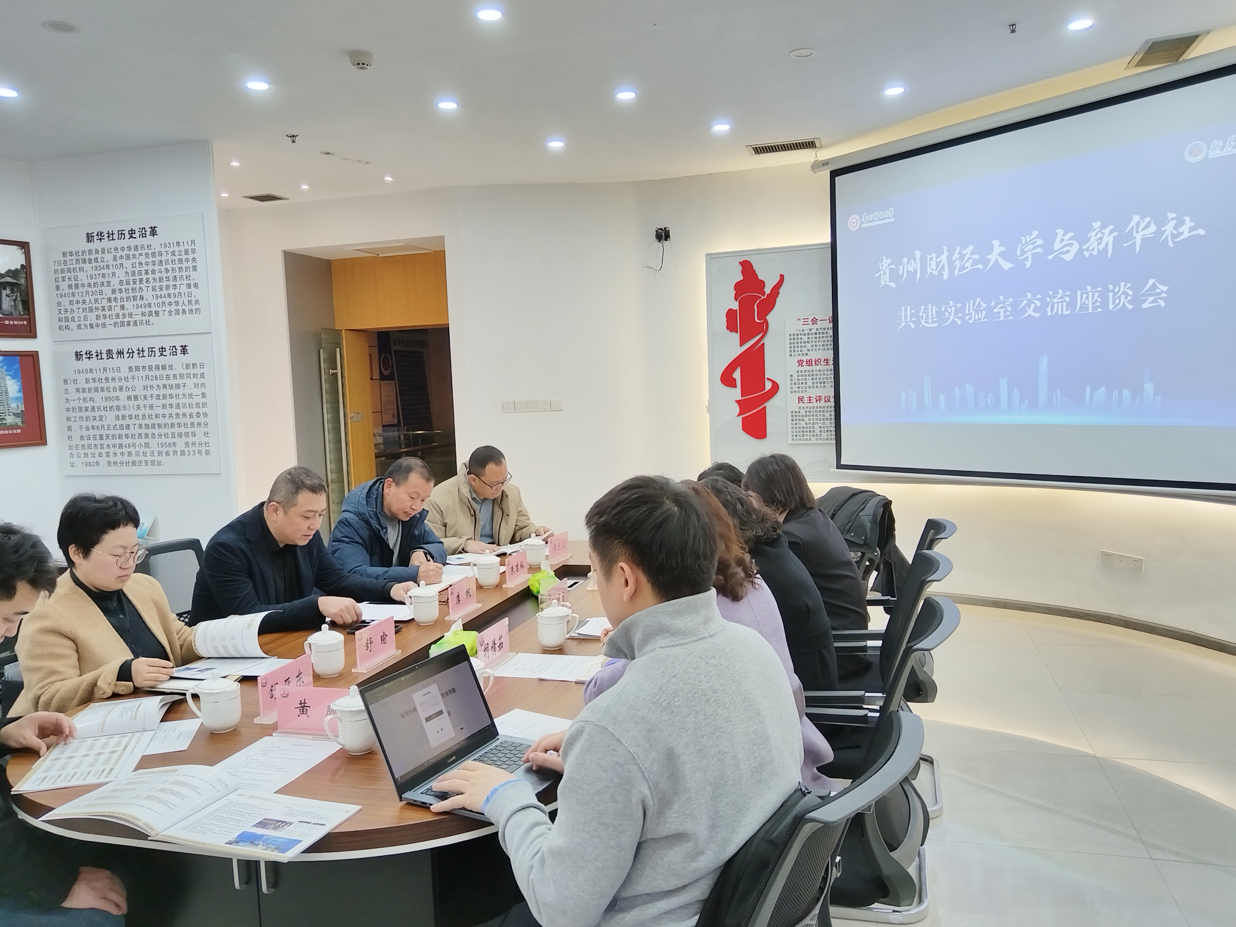 党委书记虞帆一行赴新华社贵州分社座谈交流。新华社贵州分社副社长、分党组成员王丽出席并讲话,新华社中国经济信息社贵州经济研究中心副主任胡倩茹主持。
