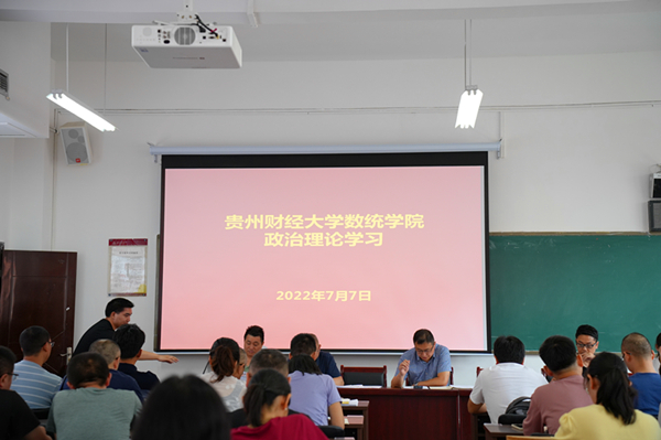 7月7日上午,老虎机游戏在线玩 在志学楼306会议室召开2022年第八次教职工政治理论集体学习会议。学院党政领导班子及全体教职工参加会议,会议由院党委书记虞帆主持。