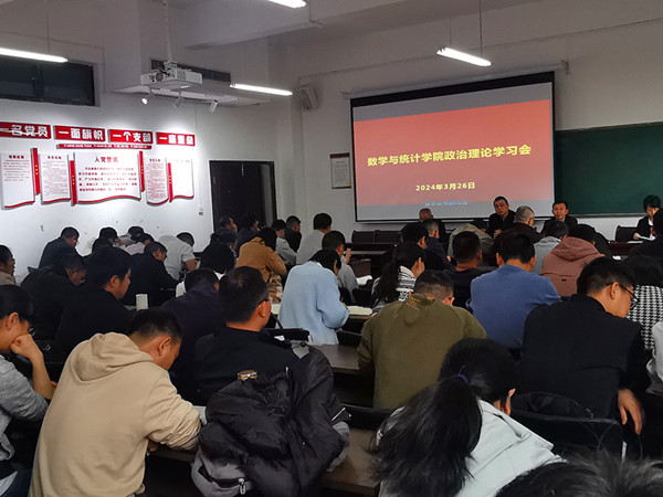 围绕全国、全省两会精神,结合学院工作实际,党委书记虞帆,基础数学教学部副主任龙凤山、教师李国强作交流发言。