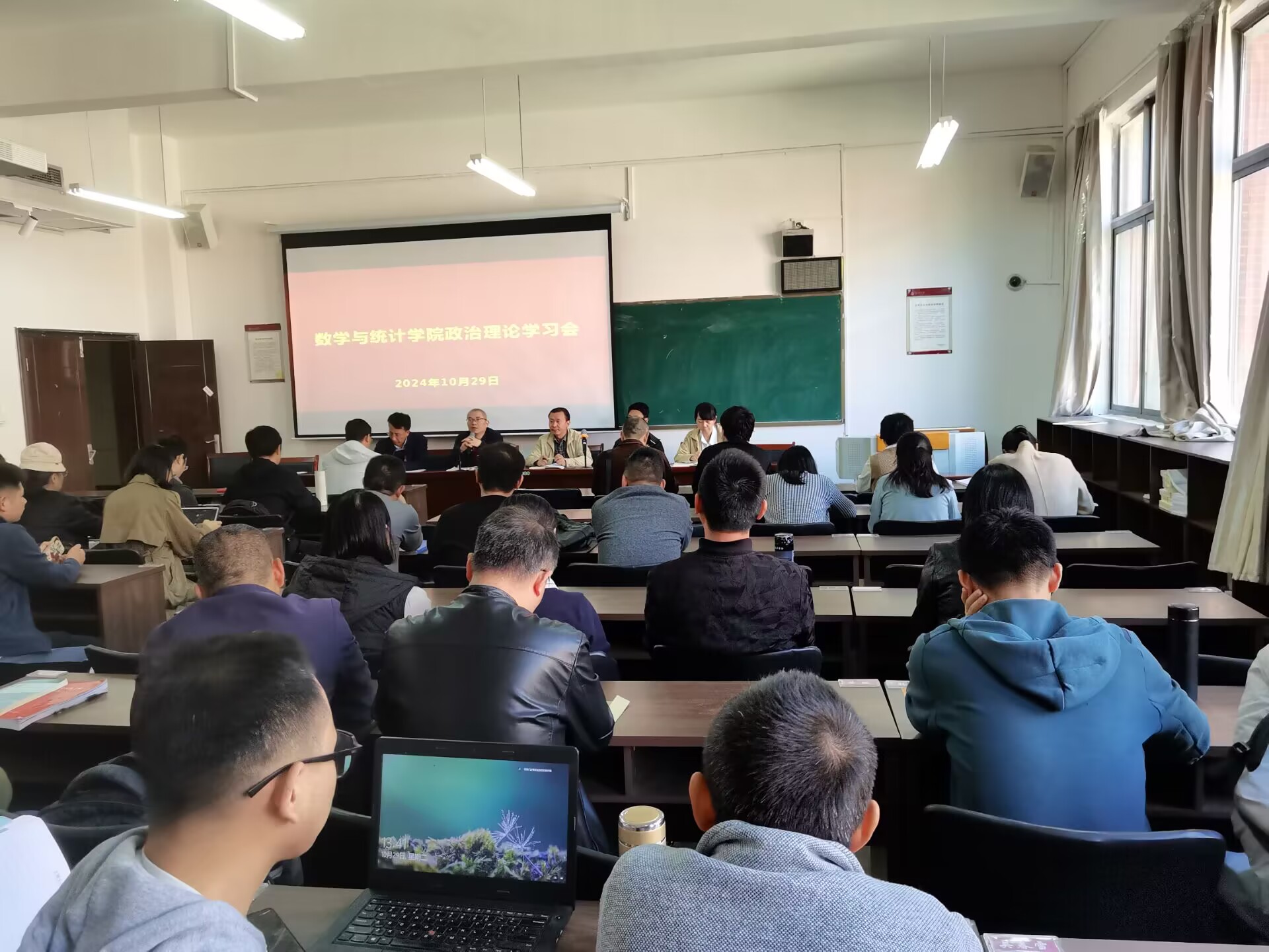 10月29日下午,老虎机游戏在线玩 在志学楼306会议室召开2024年第十四次教职工政治理论集体学习研讨会。学院党政领导班子及全体教职工参加会议,会议由院党委副书记朱吉韬主持。
