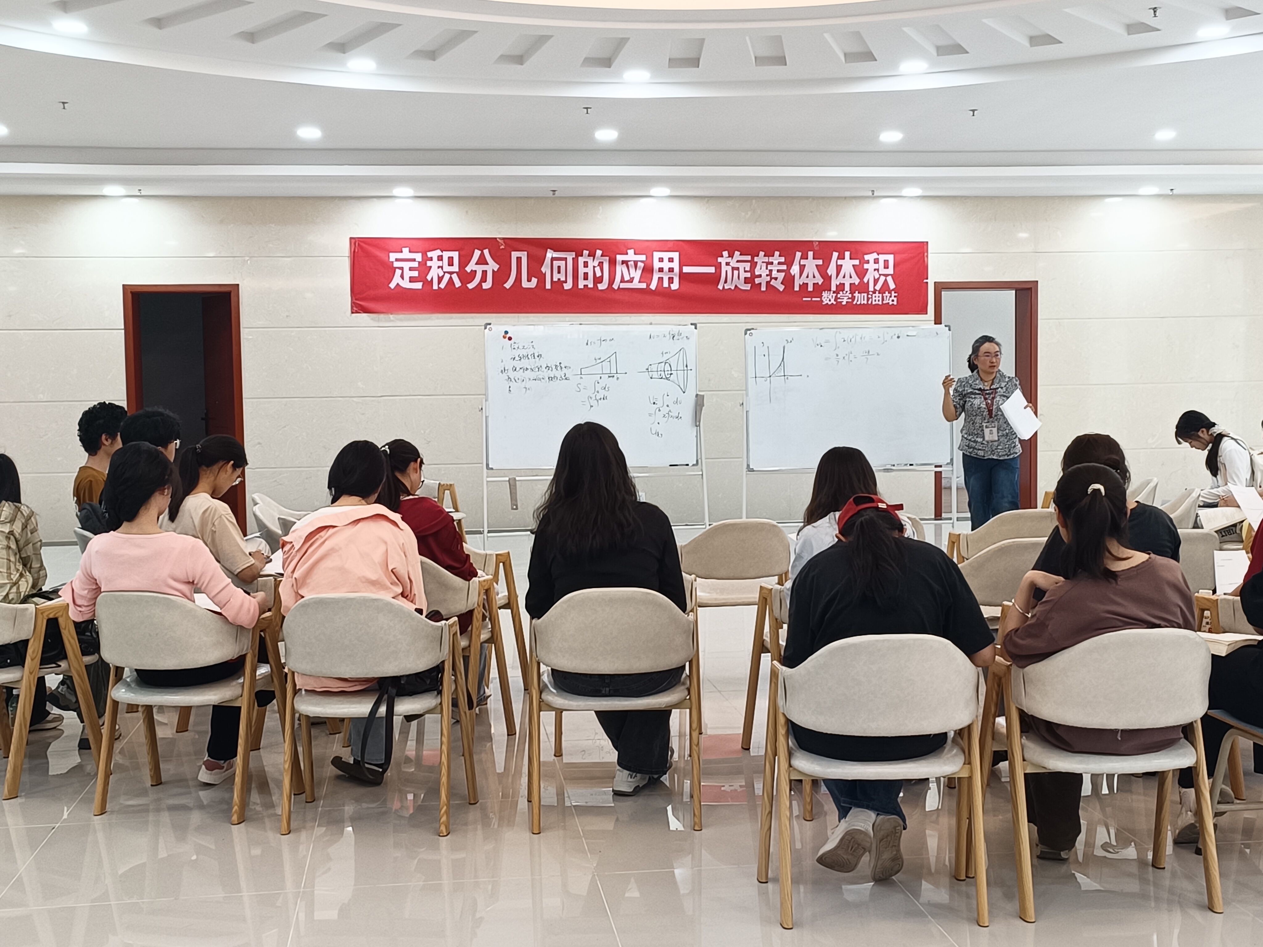 2024年4月18日,由贵州财经大学老虎机游戏在线玩 承办的数学加油站之定积分的几何应用——旋转体体积在学生活动中心举行,本次活动由班晓倩老师主讲,共三十七名学生听课。