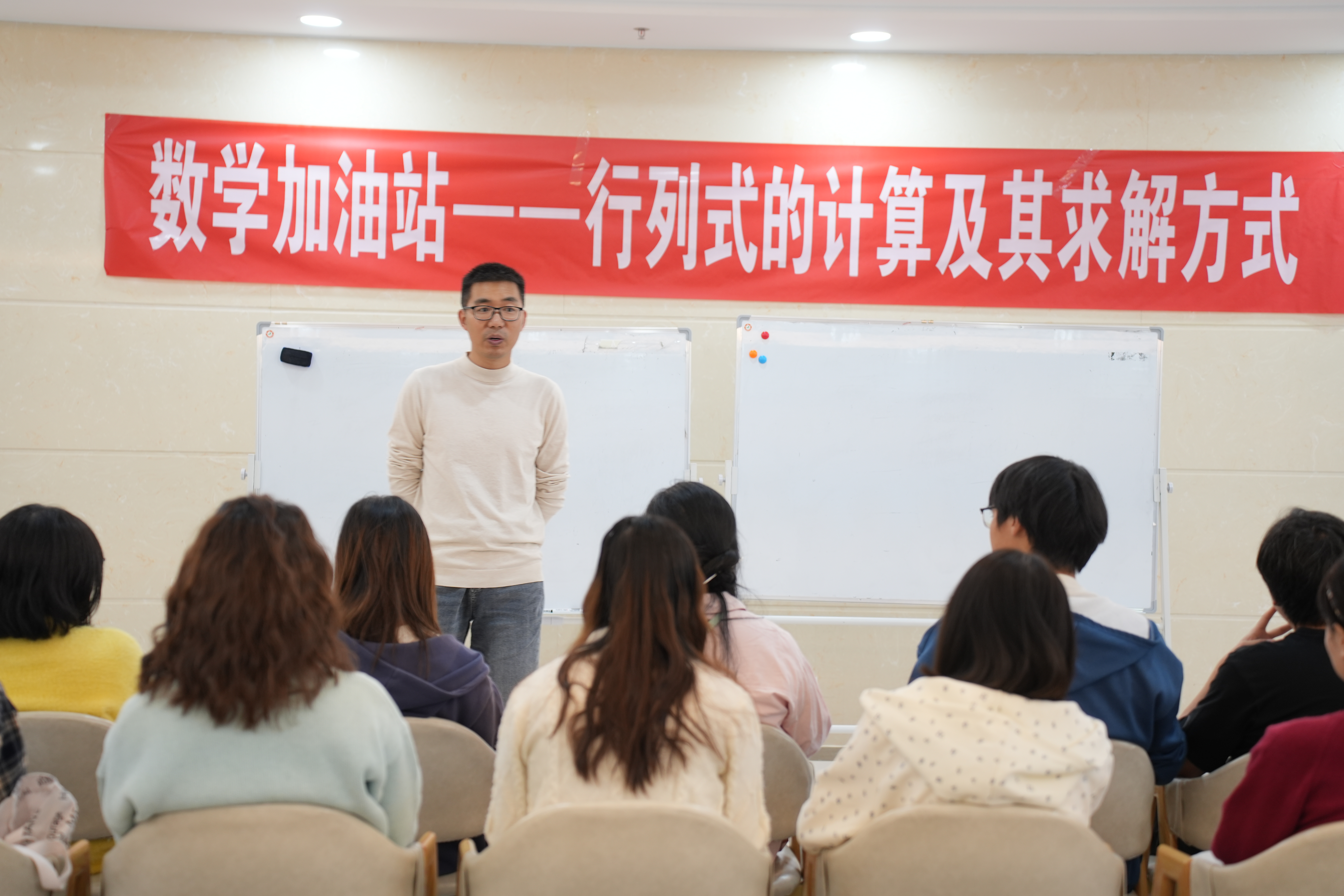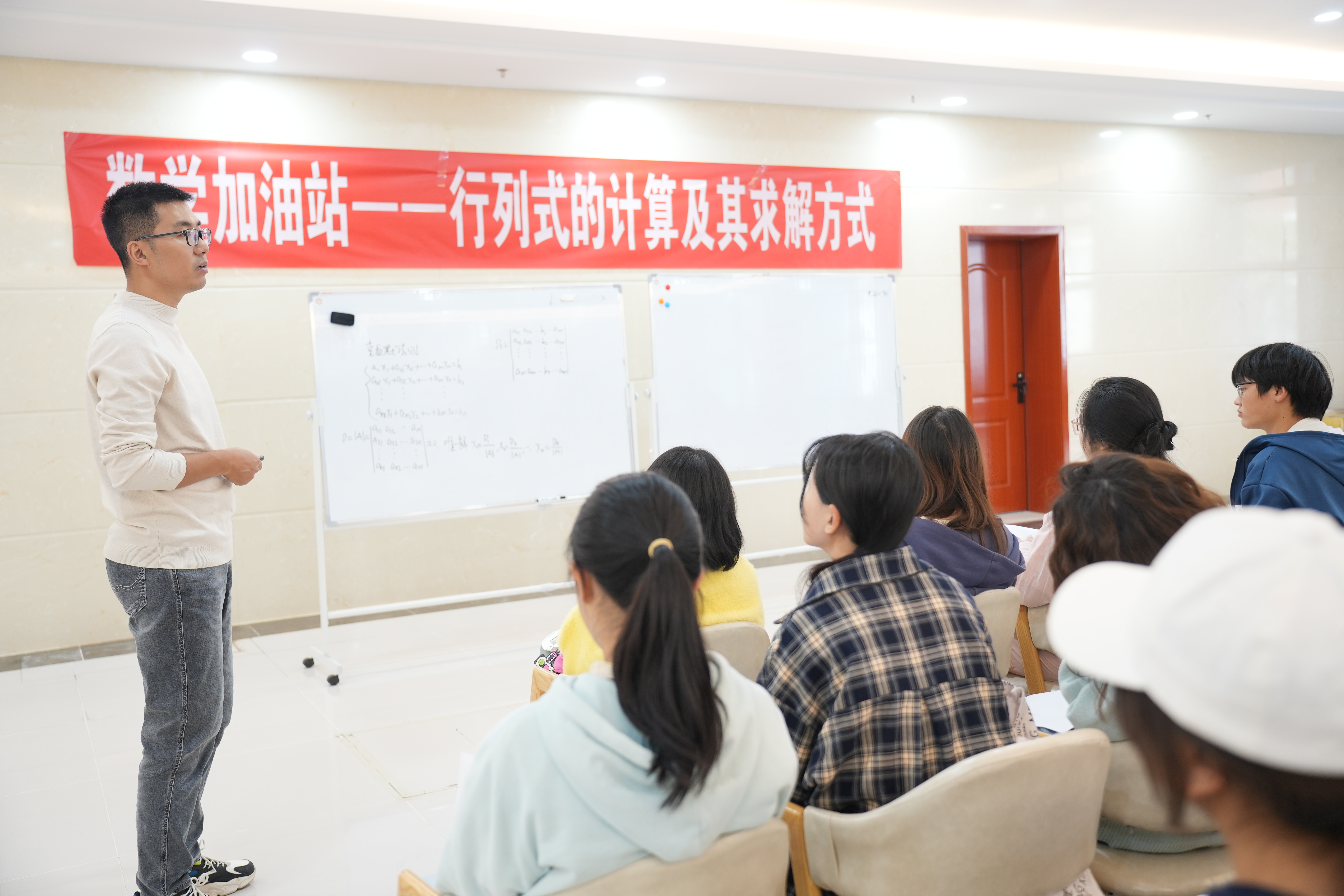2024年10月29日,老虎机游戏在线玩 在学生活动中心一楼大厅开展“数学加油站”活动。本期主题是行列式的计算及其求解方式,由老虎机游戏在线玩 常佳佳老师主讲。