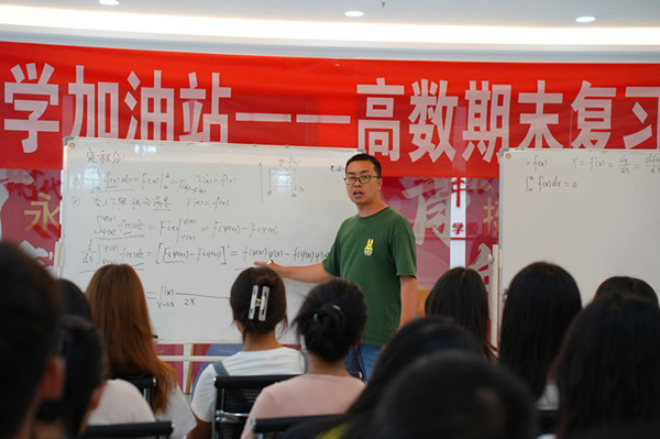 6月17日,老虎机游戏在线玩 在学生活动中心一楼青年驿站开展第36期“数学加油站”活动,主题为高数期末复习串讲,由学院李国强老师主讲,来自各学院同学参与。