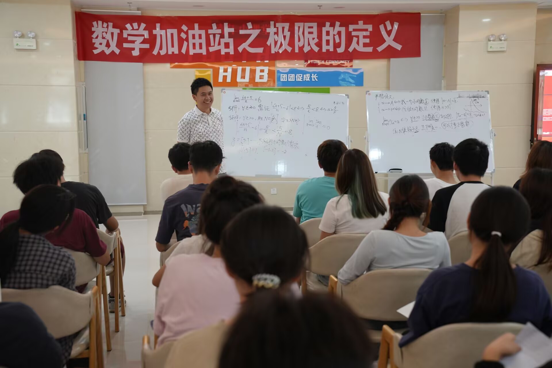 9月19日,老虎机游戏在线玩 在学生活动中心一楼青年驿站开展第37期“数学加油站”活动,主题为极限的定义,由学院周龙桥老师主讲,来自各学院同学参与。